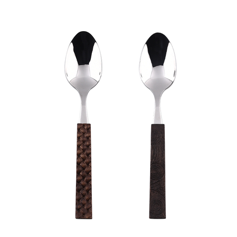 Commercio all'ingrosso moderno Set di posate in legno con forchetta in acciaio inox in metallo manico in legno Set di posate