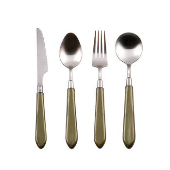 All'ingrosso nuova forma di plastica di alta qualità con manico in plastica SUS304 Set di posate in metallo con manico colorato set di posate