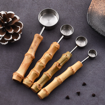 Cucharas medidoras de café de acero inoxidable con mango de bambú SUS304 al por mayor muelle redondo con capacidad de 1,25 ml 2,5 ml 5ml 15ml