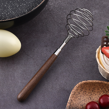 הסיטונאי ידידותי לסביבה ידנית ביצת ביצת מערבל חדש ידית עץ Sus304 מזון כיתה מתכת ידנית